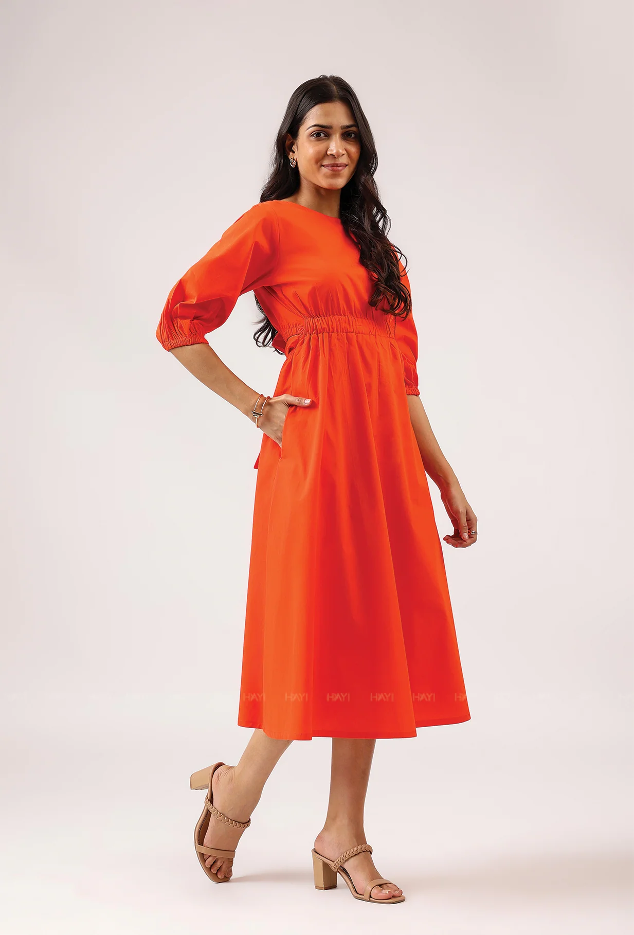 Turn heads in this vibrant orange midi dress – a bold choice for everyday elegance.