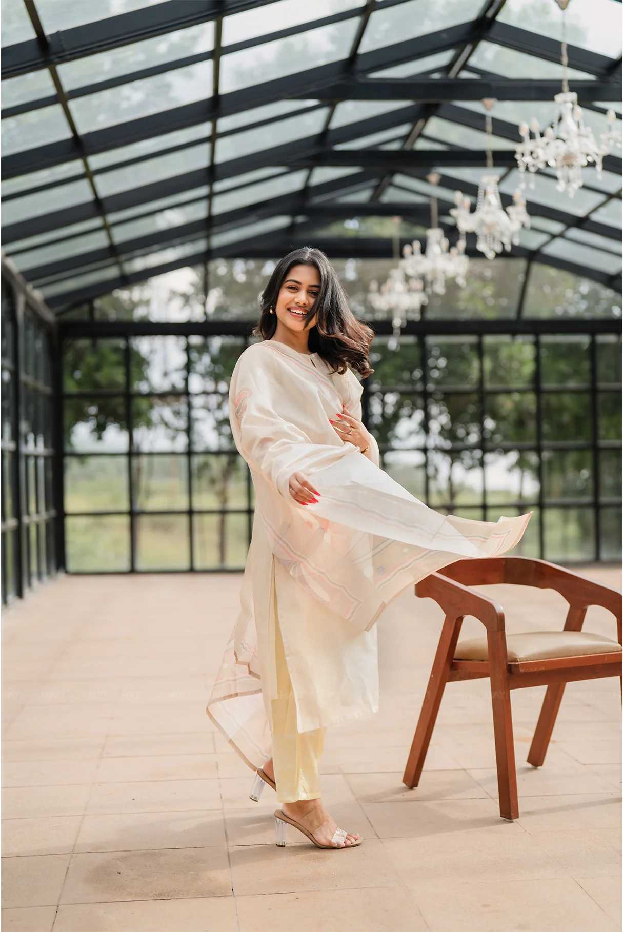 Step into understated elegance with this off-white silk blend suit set designed to exude timeless charm and effortless sophistication.